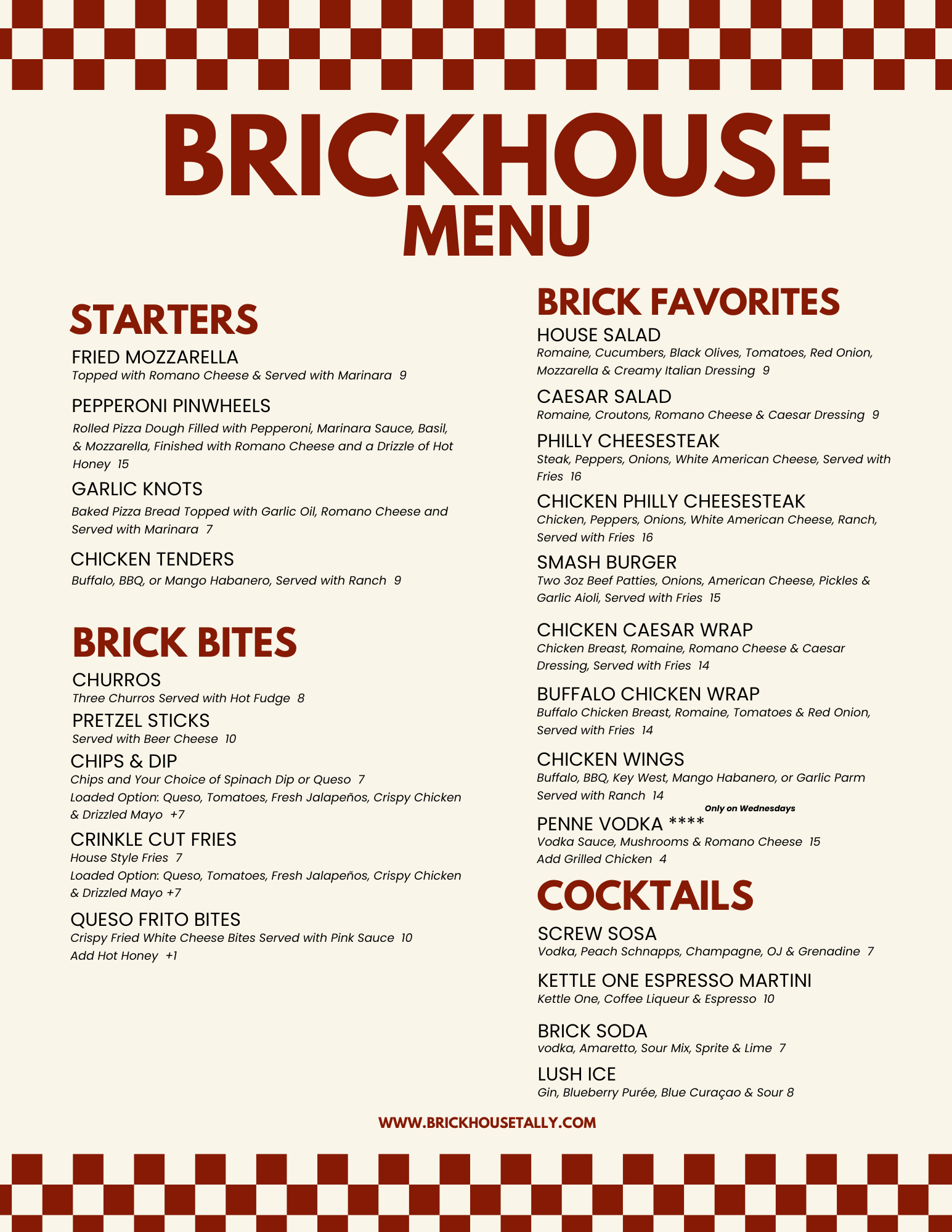 22% gratuity added to all tables of 6 or more. Menu is subject to change on game days and special events.